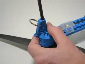 На ножке, к которой прикреплён мотор, отворачивайте 8 мм винт, удерживающий опору длинной ножки, с помощью шестигранной отвёртки/ключа 1.5 мм.