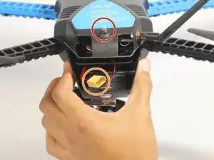К корпусу дрона прикреплены два кабеля, связывающие оболочку с корпусом. Их сложно и не нужно снимать. Просто отложите оболочку в сторону.