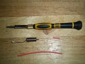 Вам понадобится отвертка Phillips PH0, термоусадочная трубка, подходящая для тонкого провода, тепловая пушка или зажигалка, женский мини-JST разъем и новый или извлечённый мотор (моторы WLToys V949 подходят).