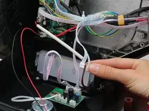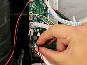 Отсоедините двухконтактный разъём красного и чёрного проводов от платы.