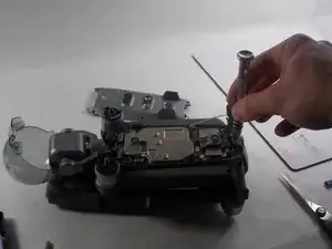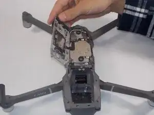 - Отсоедините 3 ленты на верхней части платы, рядом с головой дрона. Используйте лопатку.