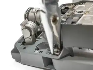 Удалите по два винта с шестигранной головкой по обе стороны от подвеса (гимбала). Это 1.5 мм и такой же длины, как и 6 винтов верхней крышки.