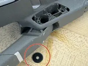 Теперь нужно удалить винт, который фиксирует передний рычаг. Этот винт уникален и должен быть отложен отдельно от остальных винтов.