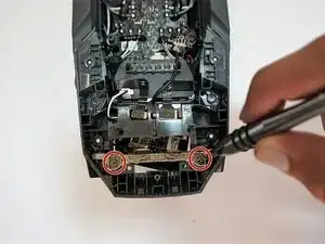 Удалите два винта 7 мм JIS #00 в самой передней части DJI Mavic Pro, поворачивая отвертку против часовой стрелки.