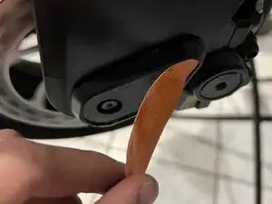 Используйте инструмент для вскрытия, чтобы снять светоотражающую наклейку с внешней и внутренней стороны оси.