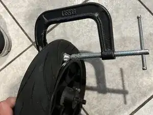 Теперь вам потребуется зажим, чтобы сжать шину по кругу и снять её с обода.