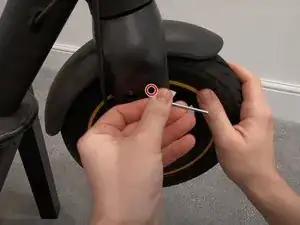 Используйте шестигранный ключ на 3 мм, чтобы ослабить три винта с каждой стороны колеса.