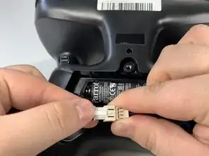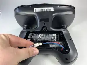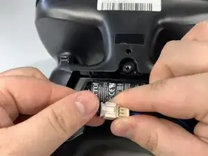 Отключите аккумулятор от пульта, нажав на белый фиксатор и разъединив разъём.