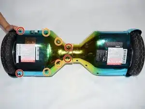 Оттяните и отложите в сторону левую половину нижней крышки. Эта половина корпуса все еще соединена с остальной частью ховерборда.