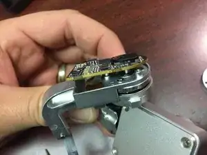 Далее осторожно приподнимите небольшую плату из поворотного рычага.