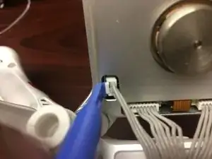 Используйте небольшой инструмент, чтобы нажать защёлку, удерживающую самый маленький разъём.