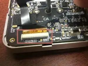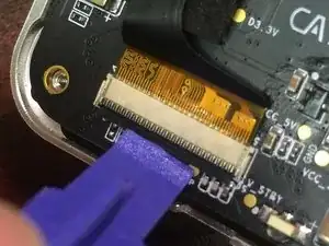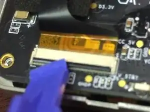Сначала снимите коричневый шлейф с платы. Это ещё один ZIF-разъём с защёлкой, которую нужно поднять ногтем.