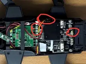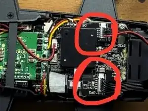 Отключите 2 кабеля, аккуратно приподняв их, и снимите верхнюю крышку дрона