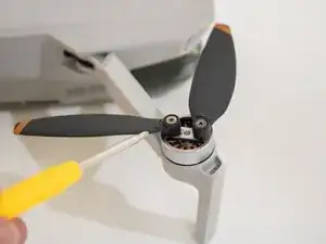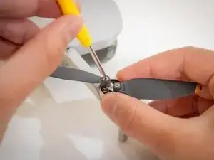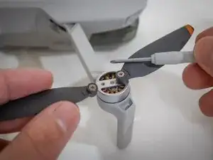 Открутите винт, соединяющий соответствующий пропеллер с мотором, используя отвёртку в направлении против часовой стрелки.