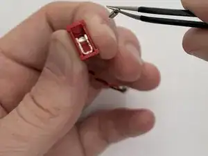 Осторожно подденьте небольшие металлические лапки, окружающие красный разъём переключателя, с обеих сторон с помощью металлической лопаточки.