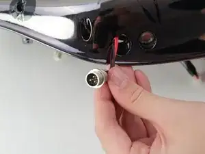 Протяните провод и разъём через снятую гайку и вытащите разъём зарядки через отверстие во внешнем корпусе.