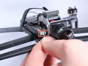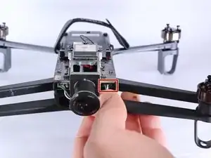 Снимите пенопластовую носовую часть с камеры дрона, сдвинув её вперед под углом.