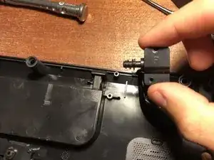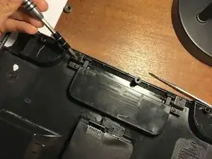 Удалите один винт из отсека аккумулятора.