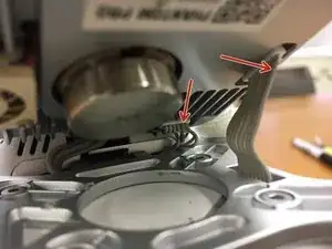Используйте лопатку, чтобы освободить лапки на (2) серых кабелях между блоком камеры и аппаратом. Отложите аппарат в сторону.
