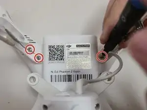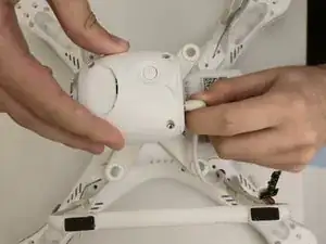 Примечание: на дроне, с которым мы работали, винты пропеллеров уже были сняты. Тем не менее, вам необходимо будет снять пропеллеры до Шага 4. Для подробных инструкций обратитесь к Удаление пропеллеров DJI Phantom 2 Vision+, так как процесс идентичен.