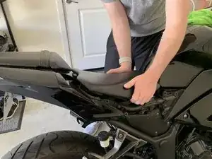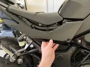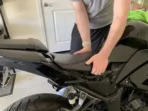 Сиденье на Ninja 300 удерживается на месте всего двумя болтами, но сначала необходимо снять небольшие пластиковые панели, что делает процесс удаления немного более сложным. К счастью, это довольно просто и требует только базовых инструментов.