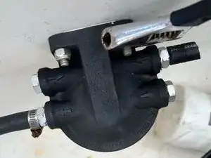 Наконец, закрутите новый топливный фильтр Racor на верхнюю базу.