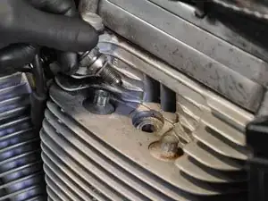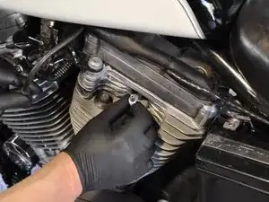 Процедура снятия свечей зажигания одинакова для переднего и заднего цилиндров, и можно заменить любую из свечей в первую очередь. В этом руководстве показана замена свечи в заднем цилиндре.