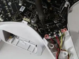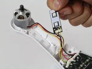 В этом руководстве Вы удалите клей с проводов, выпаяете провода, соединяющие светодиод с платой управления, и извлечёте светодиод из дрона.