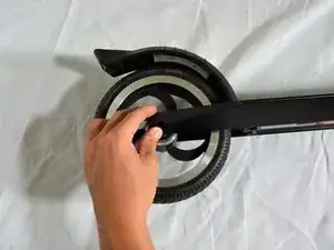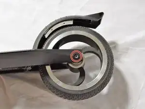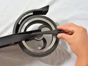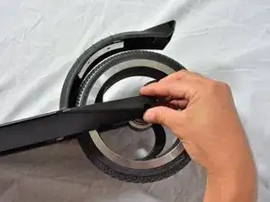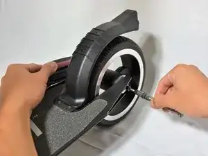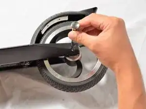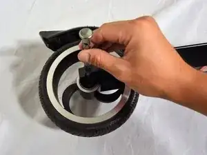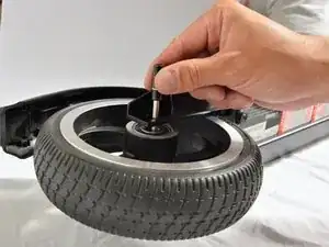 С той стороны, откуда вы удалили винт, используйте удлинитель для биты, чтобы надавить на ось внутри колеса.