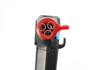 Вставьте открывающие ключи iFixit между каждым фиксирующим зажимом и тяговой ручкой, чтобы предотвратить повторное закрепление.