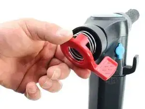 Для сборки вставьте пружину в размещенное отверстие, расположенное внутри тяговой ручки. Вставьте другой конец пружины в отверстие внутри корпуса тяги.