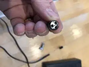 Вилка отломалась на конце, и мы не можем определить, какой провод является плюсом, а какой минусом.