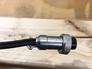 Не забудьте сначала надеть металлическую оболочку, а затем прозрачный кожух на провод, прежде чем паять вилку.