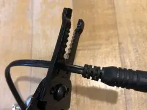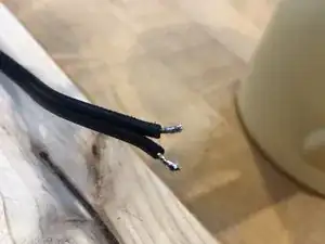Отрежьте старую вилку, снимите изоляцию и залужите концы провода. Должно быть видно всего несколько миллиметров залуженного провода.