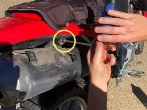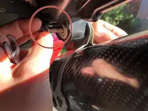 Затем отверните внутренний шестигранный болт рядом с глушителем с помощью ключа-шестигранника на 6 мм.