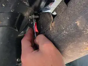 Отверните наружный шестигранный болт рядом с выпускным коллектором с помощью головки на 1/2 дюйма.