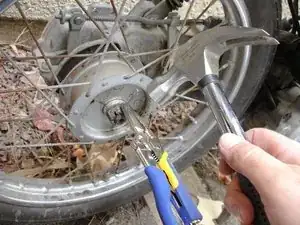 Используйте тонкогубцы, чтобы вы straighten стопорный штифт заднего колеса.